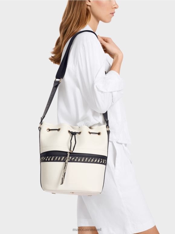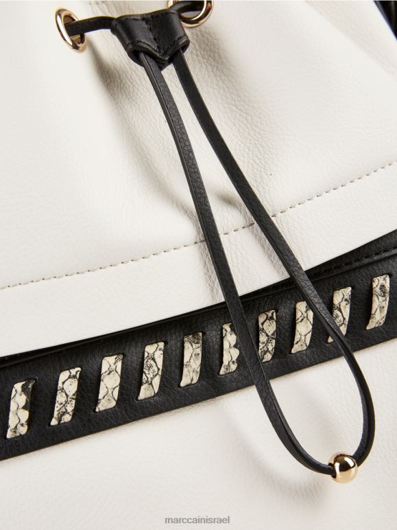לבן ושחור Marc Cain תיק דלי \"לחשוב מחדש ביחד\". אבזר 62FRR1529