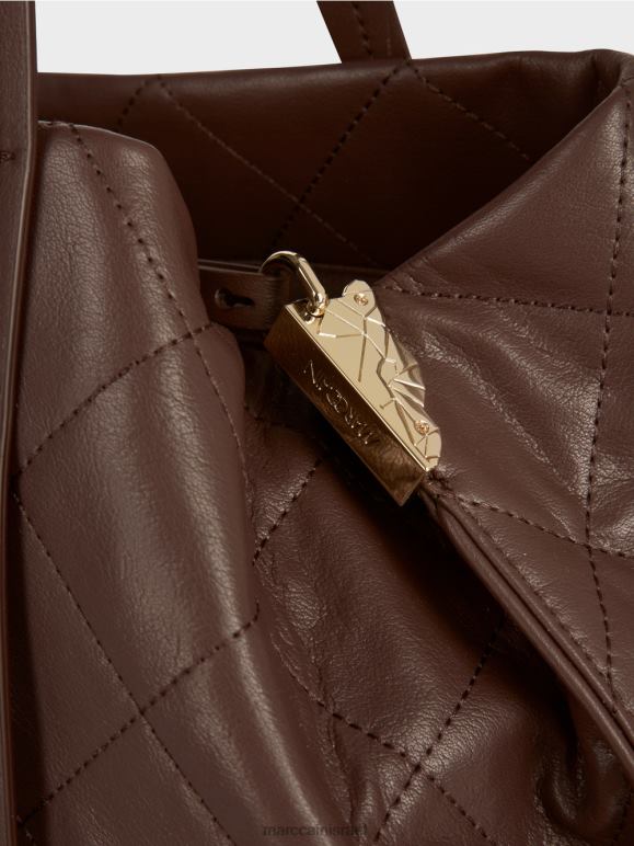 הקונה עשוי בעיקר מעור ממוחזר ונושא את תווית הקיימות "לחשוב מחדש ביחד". תכונה מגניבה היא הצורה הטרפזית, שמצטמצמת לכיוון הבסיס. התיק נסגר עם אטב מגנטי. הבסיס מוגן על ידי רגלי מתכת. פרטים דקורטיביים כוללים טלאים אלכסוניים, רצועת כתף ארוכה במיוחד ועיטורי מתכת. ניתן לחבר את רצועת הכתף לזו האחרונה. התיק מרופד ויש לו כיס פנימי עם רוכסן.