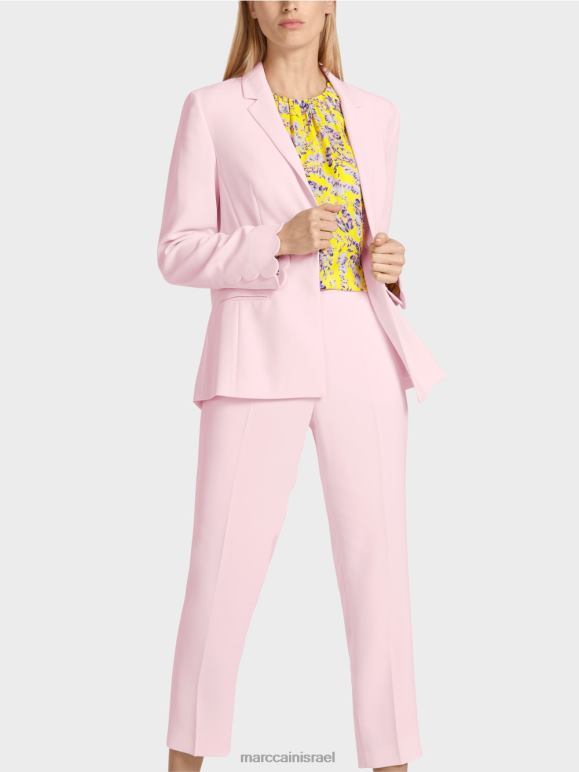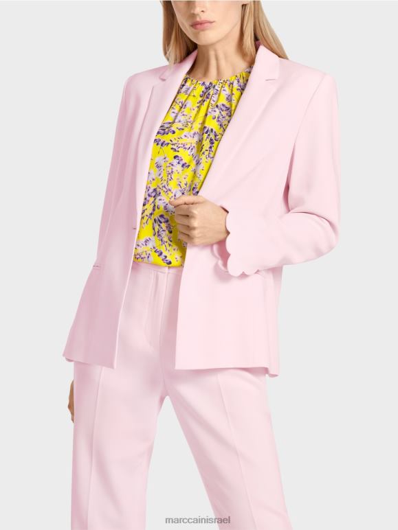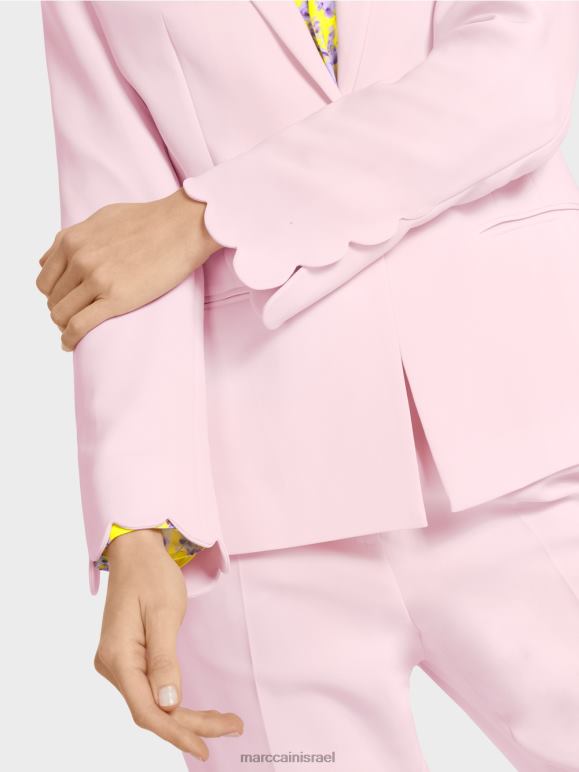הצורה הצמודה של הבלייזר הזה מושגת באמצעות התפר הנסיכותי. החומר הקל והזורם מעניק לו צללית רכה. יש כיסים עדינים ודש צר בחזית. שולי השרוול המסולסלים מוסיפים פרט דקורטיבי. לבלייזר יש גם פתח אוורור אחורי.