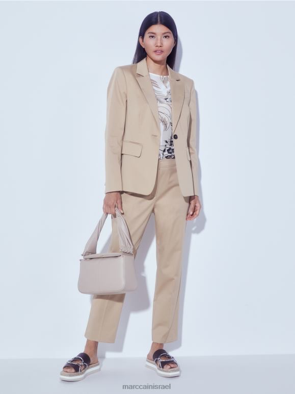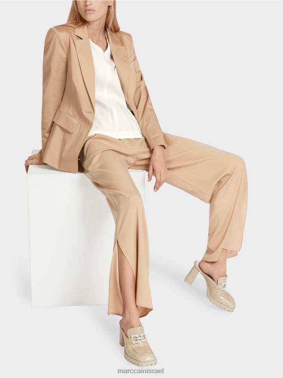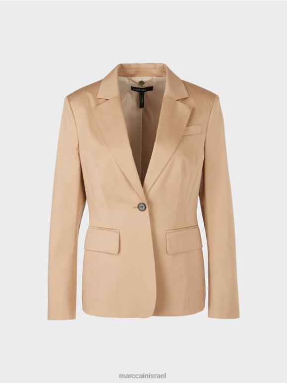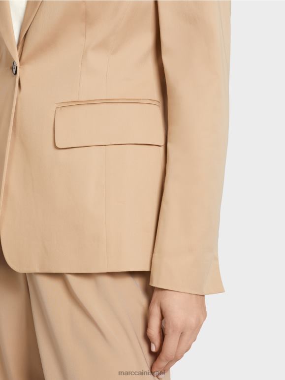 הבלייזר הזה הוא ברובו קלאסי בעיצוב ובחיפוי מלא. חצים מלפנים ומאחור יוצרים את הצורה חובקת הגוף. תכולת האלסטן והפתח האחורי מבטיחים את חופש התנועה הדרוש. הבלייזר ננעל עם כפתור בודד. לשולי השרוול יש שסע וניתן להפוך אותו בקלות.