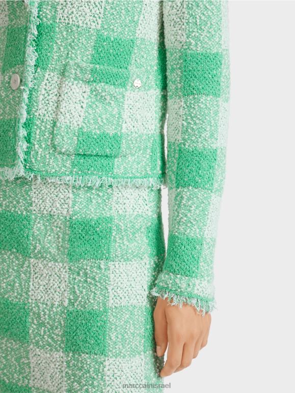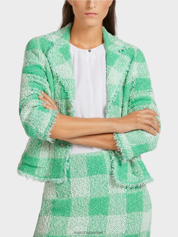 בלייזר נינוח בגזרת קופסה עם צ'ק וישי פלרטטני. העיצוב בעל החזה החד כולל דשים מחורצים וכיסי תיקון. סריג הבוקל ופרטי השוליים מעניקים לו מגע סתמי. פריט זה הוא "סרוג בגרמניה". החוט נסרג במכונות סריגה אולטרה מודרניות ועובר תהליכי גימור טקסטיל בחצרים שלנו בגרמניה. החלקים הבודדים, כגון השרוולים, החלקים הקדמיים וכו', נתפרים יחד על ידי החברות השותפות שלנו באירופה.