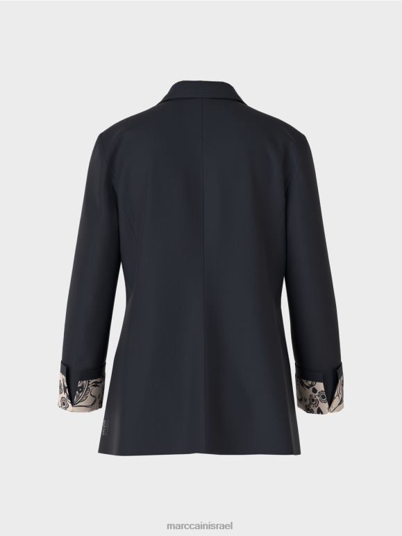 הבלייזר בעל החזה הכפול עשוי מתערובת סיבים חזקה על בסיס צמר. הצורה צמודה לגוף - יש תפרי מותניים גם מלפנים וגם מאחור. להלבשה והתפשטות קלה יותר, הבלייזר מרופד למחצה, כלומר בגב ובשרוולים. הבטנה מעוצבת.