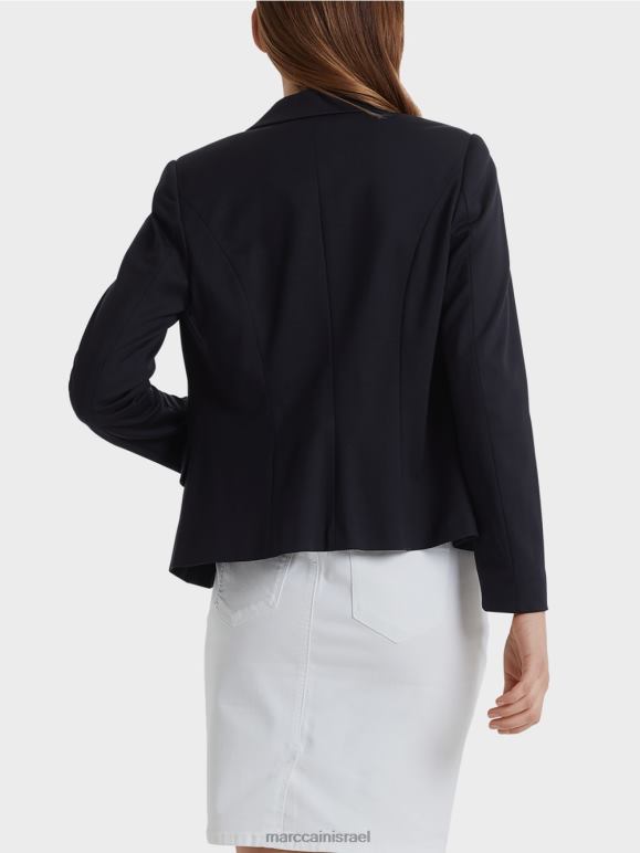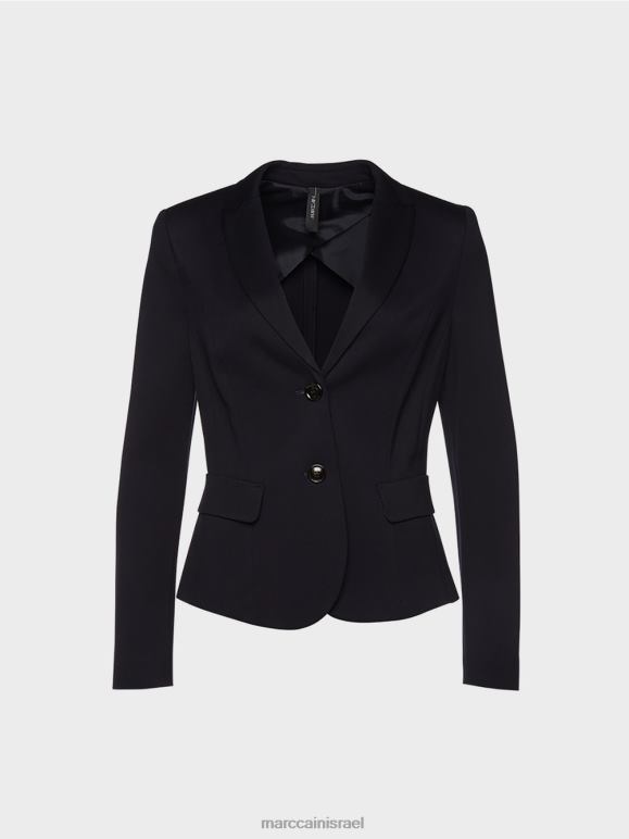 בלייזר בג'רזי איכותי עם דש צר וכיסי דש מודגשים. הבלייזר מהודק עם שני כפתורים מרכזיים בחזית. השרוולים מרופדים.