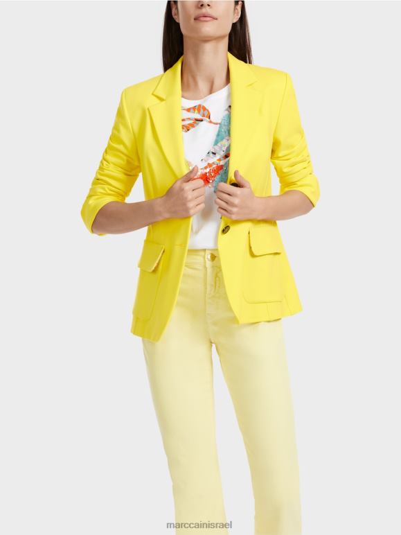 בלייזר נמתח בתערובת חומרים עם ויסקוזה. הבלייזר הזה מרשים בנוחות הלבישה הנעימה שלו למרות תפרי הנסיכות המחובקים לדמות. אלמנטים קלאסיים הם הדש וגם כיסי הדש הגדולים. פרטים מודרניים כוללים את סגירת הכפתורים המנוגדת ותפרי השסעים.