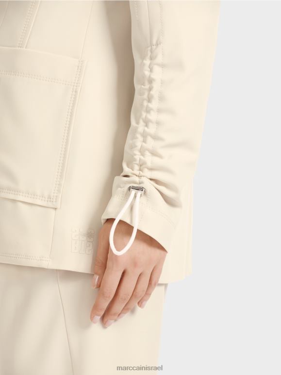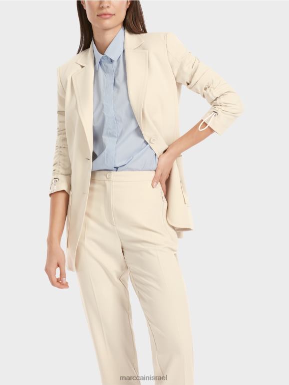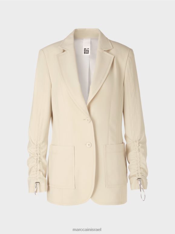 בלייזר עשוי מחומר טכני. הצורה המחבקת לגוף נוצרת על ידי תפרי נסיכות מלפנים ומאחור, כמו גם חצים נוספים לחזה. לוכד עיניים הוא השרוך בשרוול, המאפשר התכנסות. ניתן למצוא תפרים דקורטיביים לאורך הקצוות.
