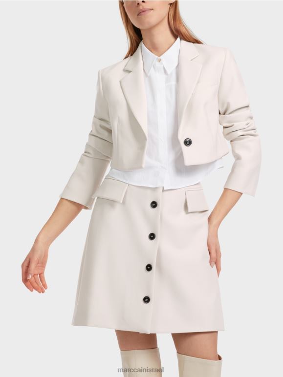 בלייזר בתערובת חומרים עם כותנה ואלסטן. עם הגזרה הקצרה שלו, הבלייזר הזה מבקיע בתור בן לוויה נוכחי למכנסיים וחצאיות. יש לו דש טיפוסי וכיס חזה בצד שמאל. הז'קט ננעל עם כפתור צבעוני מנוגד. תפרי נסיכות וחצים יוצרים צללית חובקת דמות. שולי השרוולים מחורצים ליותר נוחות.
