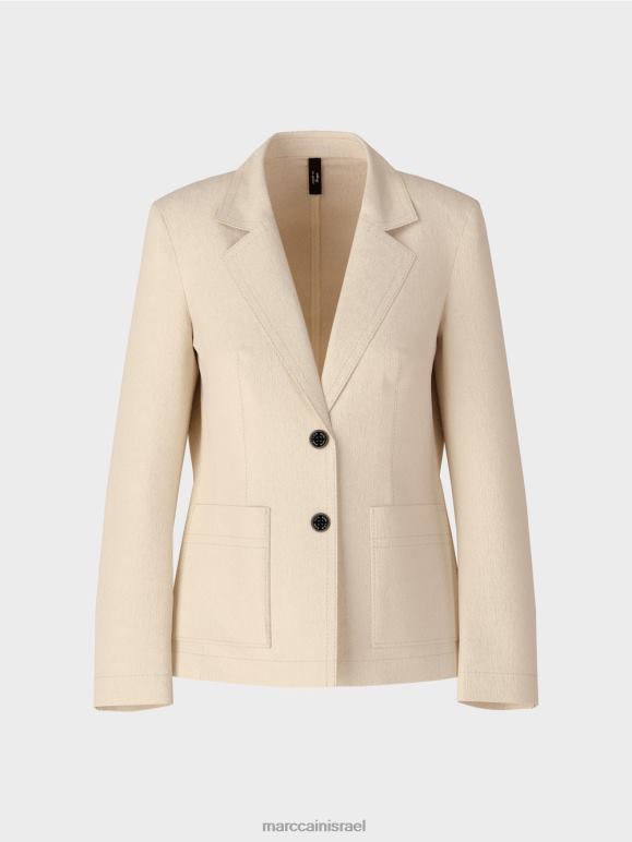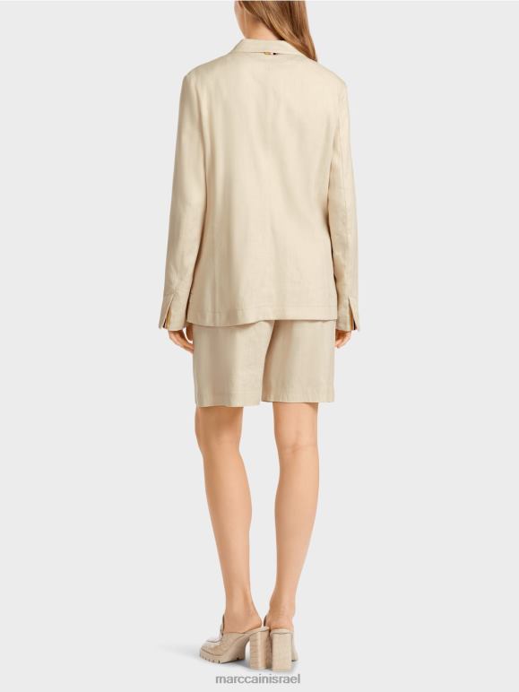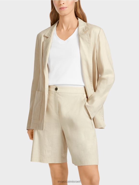 בלייזר קיצי בפשתן, כותנה ואלסטן. בלייזר חד חזה זה מחבק דמות ומגיע עם שני כפתורי מארק קין. הסרט החוט העדין על הצווארון מוסיף מבטא ספורטיבי. כיסי התיקון מחזקים את המגע הקז'ואלי, המושלם באופן קלאסי על ידי הדש.