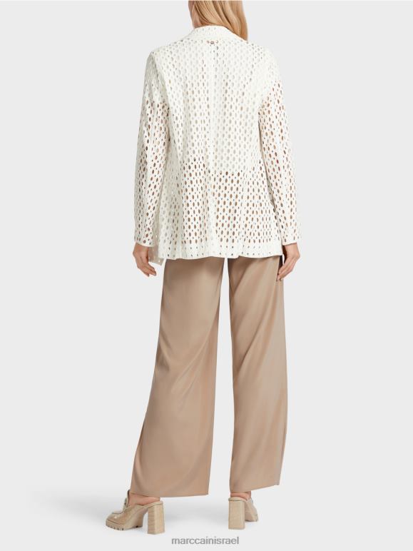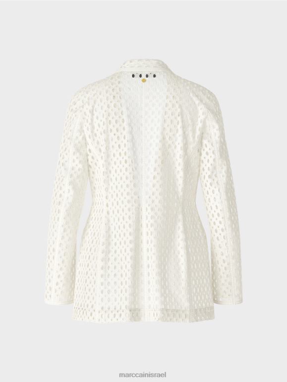 הדוגמה המחוררת הבולטת של הבלייזר מאפשרת אפקטים מגניבים בשכבות. התפרים מסיימים בסרטים, ויוצרים את חלק הבנייה של העיצוב. הדגם מעוצב ללא הידוק ויש ללבוש אותו פתוח.
