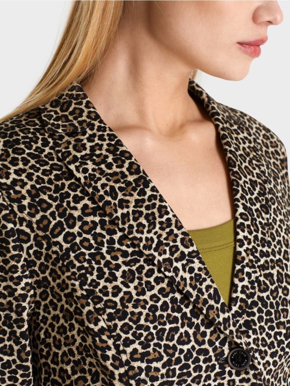 הבלייזר בעל שני הכפתורים מרשים עם הדפס אריה מסוגנן שמושך תשומת לב. איכות הג'רזי המתיחה הקלה מבטיחה את נוחות הלבישה הטובה ביותר. כיסים עם תיקון, מכפלת מעוגלת וחפתים מחורצים מעגלים את העיצוב.