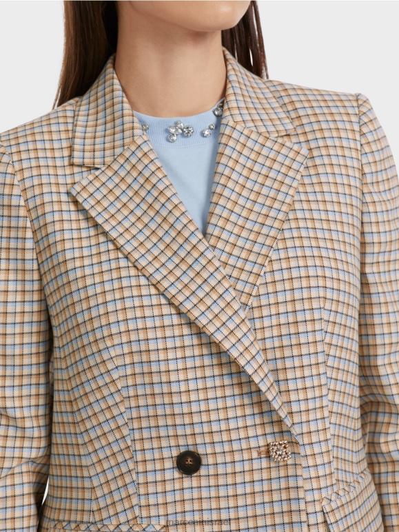 בלייזר עם תכולת צמר ואלסטן. העיצוב המשובץ נותן לבלייזר הזה מגע בריטי. למרות שהוא נחתך קרוב לדמות הודות לתפרי הנסיכות והחצים, הוא עדיין מאוד נוח ללבישה. הדש, כיסי הדש, כמו גם הכפתורים בשולי השרוולים מציגים את עצמם באופן קלאסי. שני כפתורי הביג'ו השונים בחזית מספקים לוכד עין מעניין.