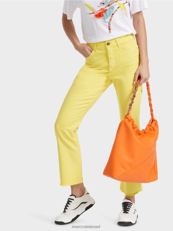 מכנסיים בגזרה נשית Forli מ- תווית הקיימות "חשבו מחדש ביחד". מכנסיים אלה עשויים מכותנה עם תוכן מתיחה קל. הם מגיעים בעיצוב הג'ינס האופייני לחמישה כיסים ומהודקים עם רוכסן וכפתור. הקצוות הפתוחים עם השוליים הם פרט יפהפה.
