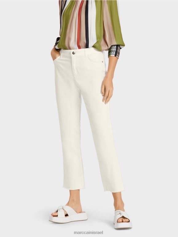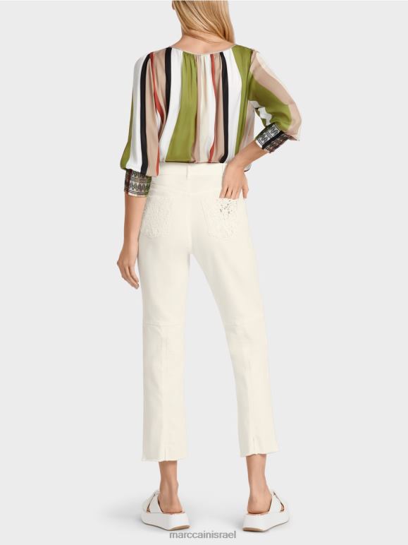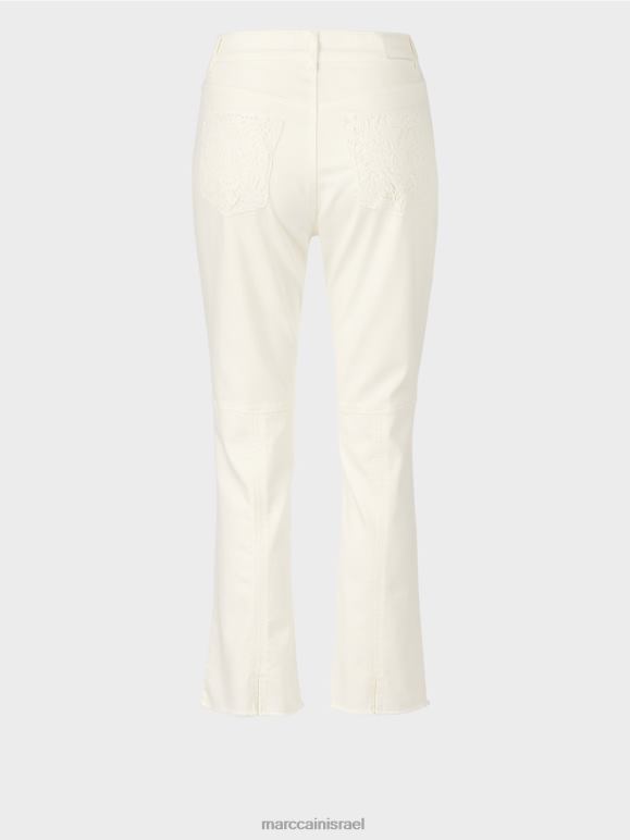 הג'ינסים האלה עם חמישה כיסים עשויים מכותנה אורגנית ונושאים את תווית הקיימות "לחשוב מחדש ביחד". קלאסי מלפנים, ישנם כיסי תחרה מאחור ותפרים ארגונומיים. המכפלות משוצות.