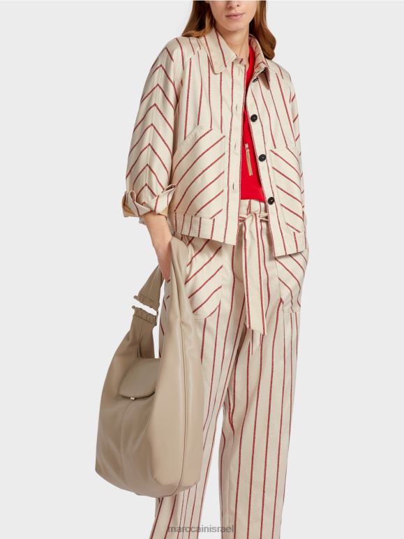 עם הצורה הקופסתית שלו, שרוולי הראגלן וכיסי הטלאים הגדולים, הז'קט הזה שואב בבירור את ההשראה שלו בגדי עבודה. הפס האלגנטי והחומר הזורם בעדינות מעניקים לו מגע נשי. ניתן לכוון את רוחב המכפלת מאחור בעזרת שרוך. עשוי מ-lyocell מווסת טמפרטורה, הז'קט תמיד מרגיש נעים על העור.