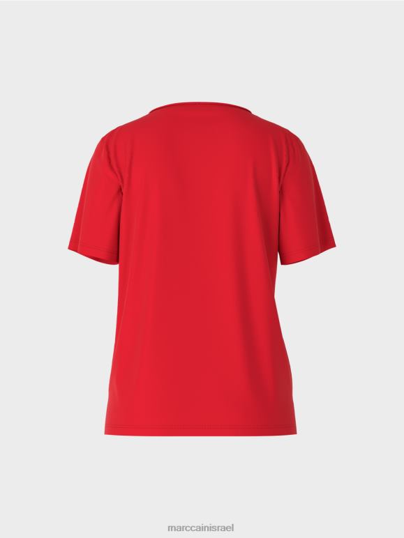ראשי| הַלבָּשָׁה| אדום עמוק Marc Cain חלק עליון מכותנה נמתחת הַלבָּשָׁה 62FRR1381