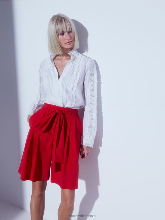 קפלי מותניים מעניקים למכנסיים הקצרים האלה בסגנון שקית נייר את המלאות המסוגננת שלהם. המותניים מודגשות עם חגורת עיטוף. למכנסיים יש ארבעה כיסים: שני כיסים צדדיים ושני כיסי תיקון מאחור. החומר מבוסס כותנה ומרגיש קל ורך למגע.