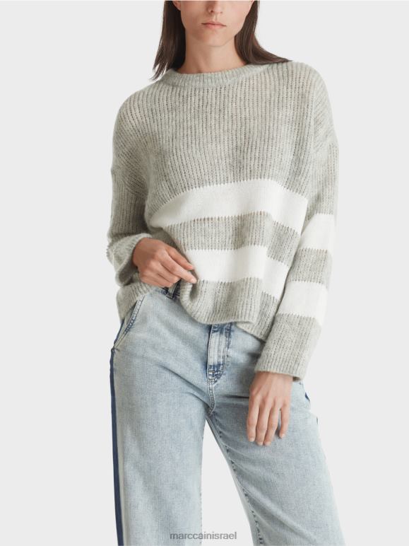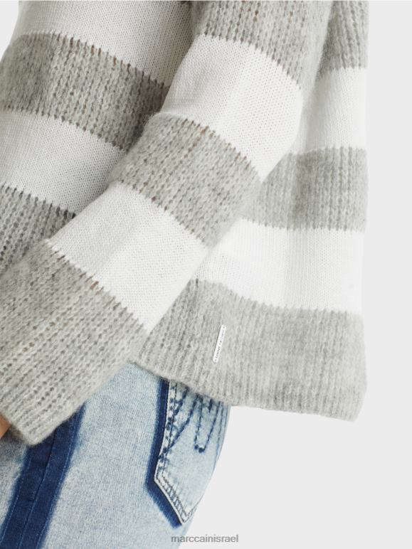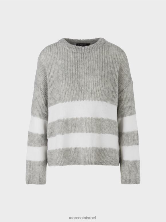 ראשי| הַלבָּשָׁה| אפור כסוף Marc Cain סוודר פסים סרוג בגרמניה הַלבָּשָׁה 62FRR1097