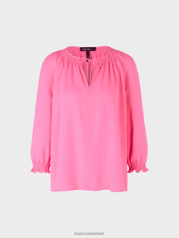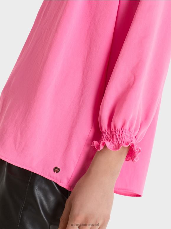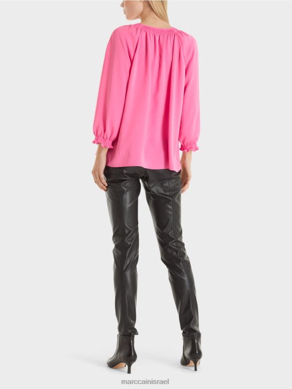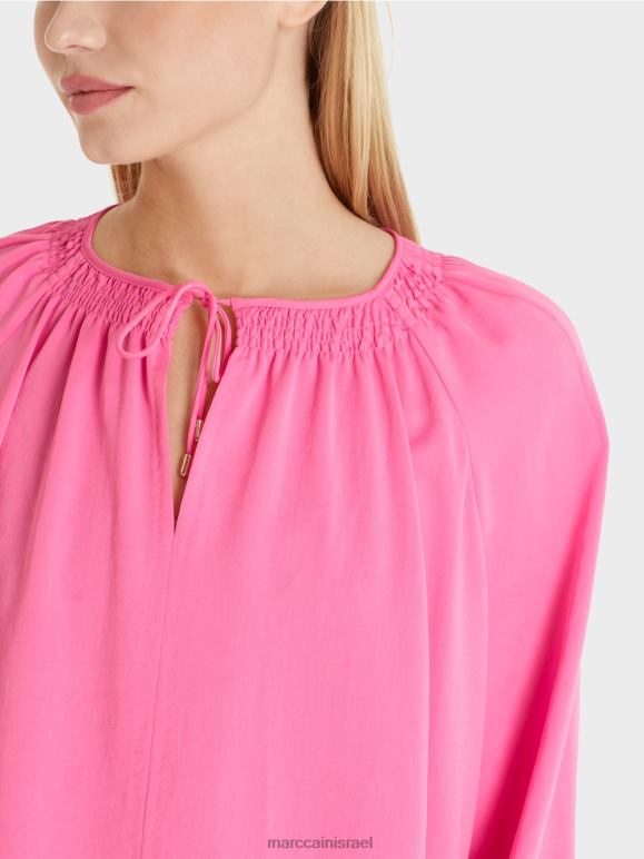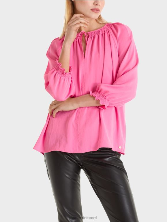 החולצה הנשית הזו נושאת את תווית הקיימות "לחשוב מחדש ביחד" והיא עשויה ממוחזרים פּוֹלִיאֶסטֶר. פרטים מעוטרים בקו הצוואר והחפתים מדגישים את המראה. תפרים באופטיקה של תפר יד קובעים הדגשים מיוחדים.