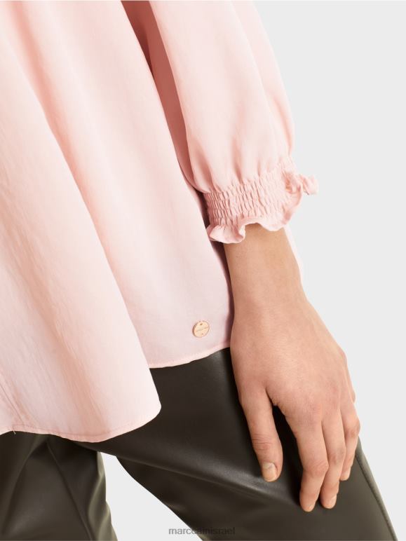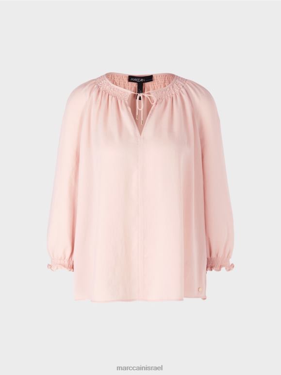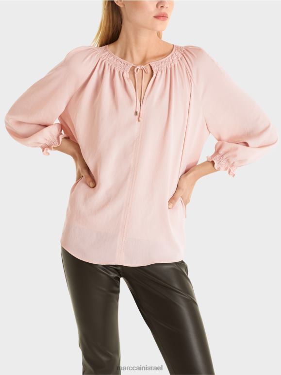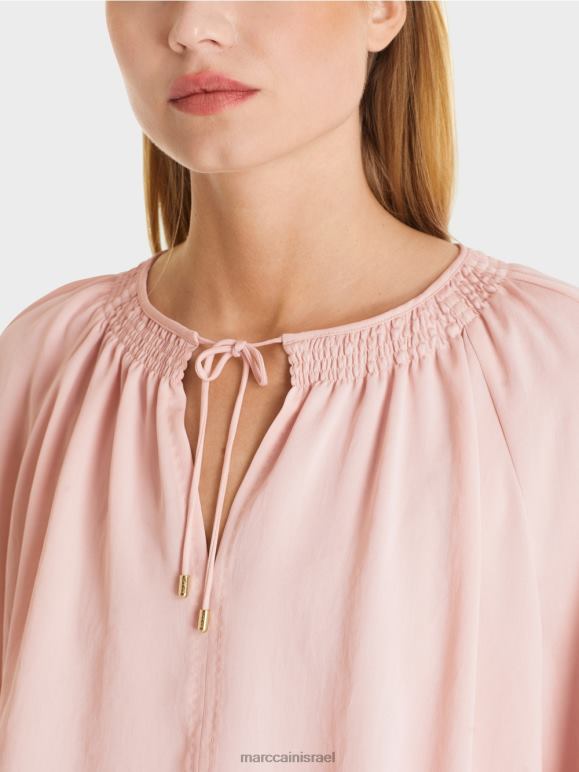 החולצה הנשית הזו נושאת את תווית הקיימות "לחשוב מחדש ביחד" והיא עשויה ממוחזרים פּוֹלִיאֶסטֶר. פרטים מעוטרים בקו הצוואר והחפתים מדגישים את המראה. תפרים באופטיקה של תפר יד קובעים הדגשים מיוחדים.
