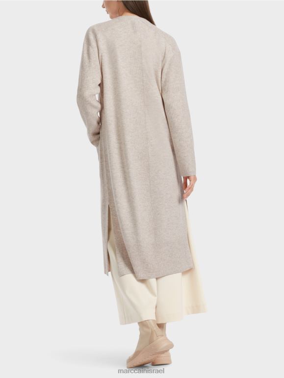 למעיל הסרוג הארוך יש התאמה נינוחה ורפויה והוא מיועד ללבישה פתוחה. יש לו צווארון V, שרוולים נמוכים ושסעי צד גבוהים. בחלק הקדמי יש שני כיסי תיקון. יעיל, המשחק עם המבנים השונים: השרוולים ועול הכתפיים מצולעים ופס עובר במרכז הגב בדוגמת רשת.