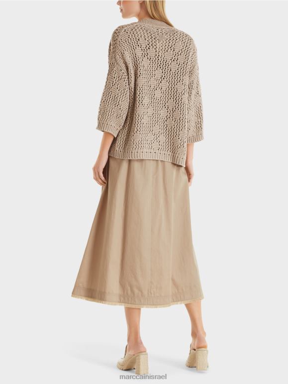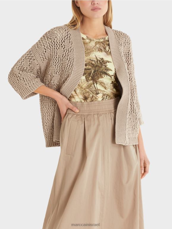 הקרדיגן הזה בגזרה קז'ואלית רפויה סרוג בתערובת חוטים ויסקוזה ופוליאמיד ומתהדר בקלילות וילון זורם. הגב דמוי רשת ומשובץ ביהלומים ממוקמים באופן שווה.