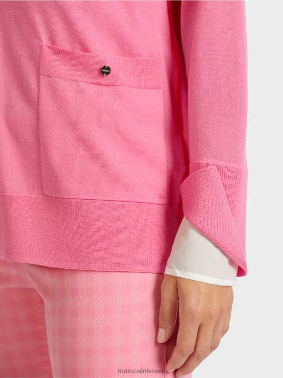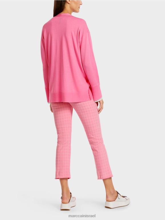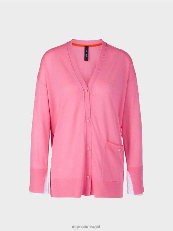 הקרדיגן האלגנטי הזה משוחרר כלאחר יד ויש לו שרוולים נמוכים. הסריג העדין מודגש בשוליים חזקים. שולי השרוול משובצים בחומר ניגודי כדי ליצור רושם של שרוול חולצה שמציץ החוצה ומוסיף פרט שיקי.