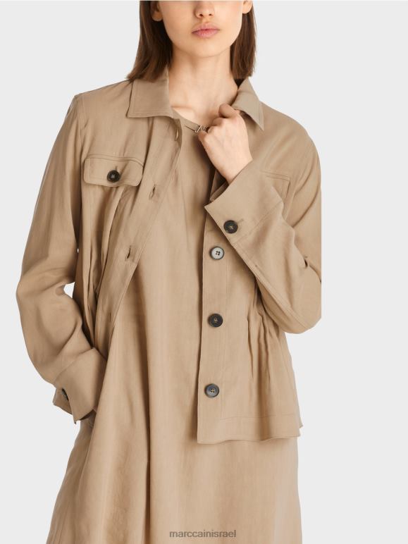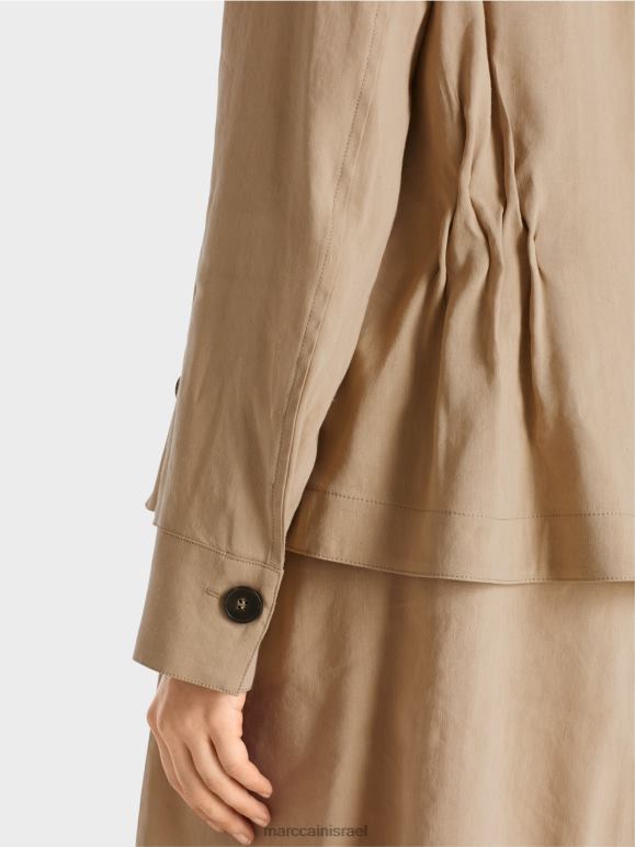 המעיל הוא בתערובת מצננים של פשתן עם ויסקוזה. שרוולים מרופדים מקלים על ההלבשה וההסרה. העיצוב משלב אלמנטים ספורטיביים ונשיים כאחד. כיסי הדש, כיסי הצד המוכנסים וכיסום הכפתורים כולם מנוגדים לקפלים המעוטרים במותניים.