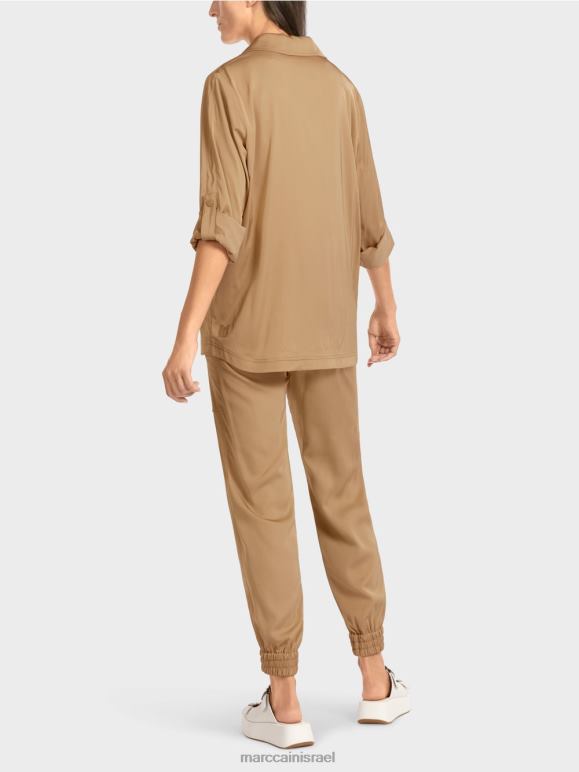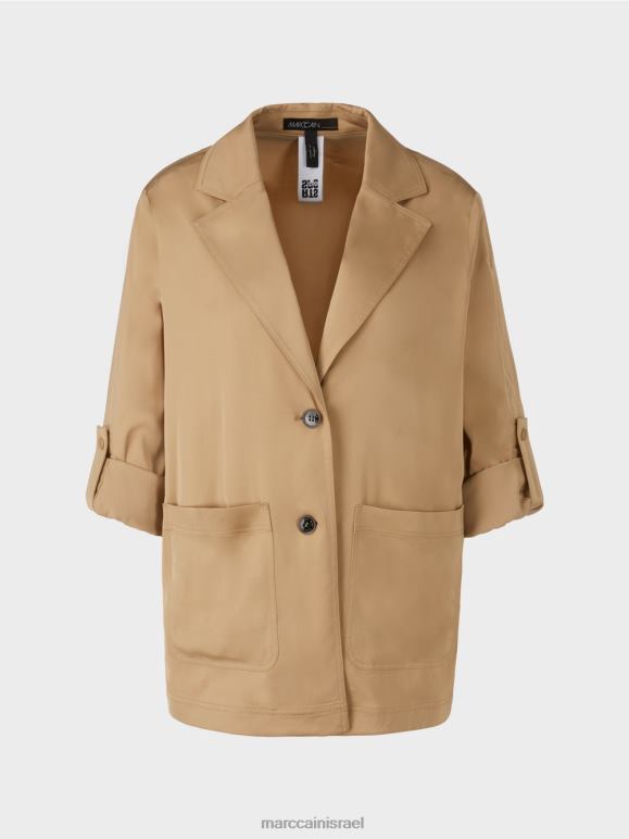 הבלייזר הארוך הזה הוא בתערובת ויסקוזה ואלסטן ויש לו משטח מבריק מעט. החומר הרך והשרוולים המופשלים מעניקים אפקט דמוי חולצה לסגנון. פרטים נוספים כוללים את צווארון הדש וחזית חד חזה עם שני כפתורים.