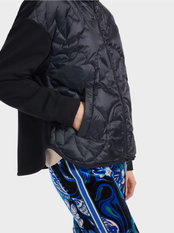 המעיל נושא את תווית הקיימות "לחשוב מחדש ביחד". הסיבה לכך היא שהחזית עשויה מפוליאמיד ממוחזר ומלאה בפומה מאווזים מחקלאות מוסמכת ידידותית לבעלי חיים. השרוולים והגב עשויים מג'רסי רך וגמיש עם תוכן ויסקוזה. פרטים פונקציונליים כוללים את הרוכסן הקדמי, צווארון עמיד וכיסים מלוכסנים. קו המכפלת מעוגל לכיוון התפר הצדדי. הגב חתוך מעט יותר.