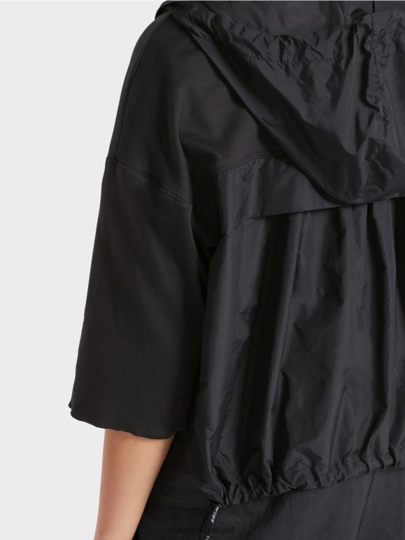 ז'קט רחב עם אופי ספורטיבי. מעיל זה בצבע אחיד כולל עיצוב נינוח. החלק הקדמי עשוי כותנה, בעוד שהגב המסולסל והמכסה המנוע מגיעים בברק קל. למכסה המנוע והמותניים יש שרוך. פרט מקסים אחד הוא צווארון השכמייה מאחור. ניתן להפשיל את השרוולים כלאחר יד. כיסי צד משלימים את נוחות הלבישה.