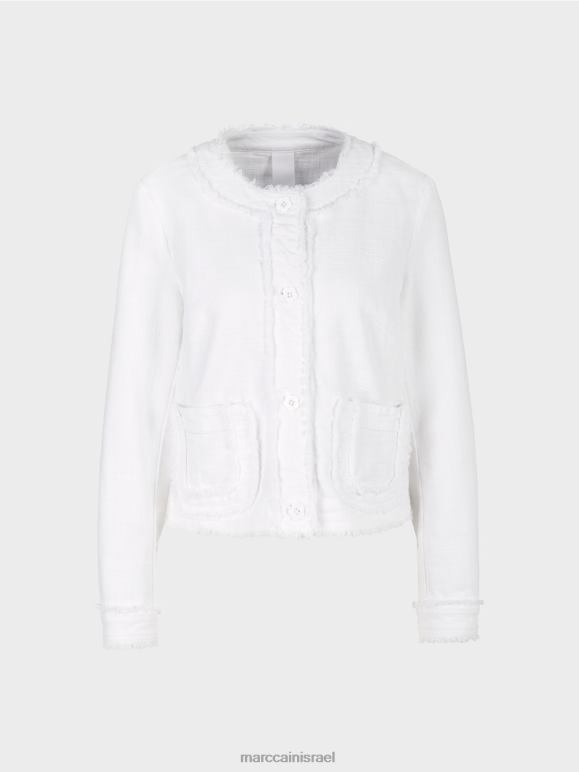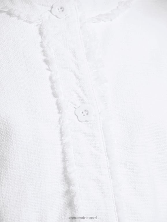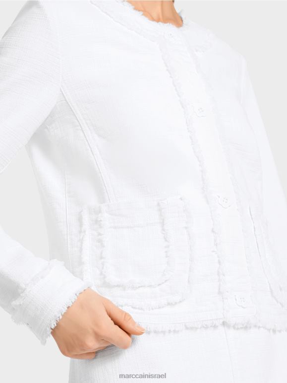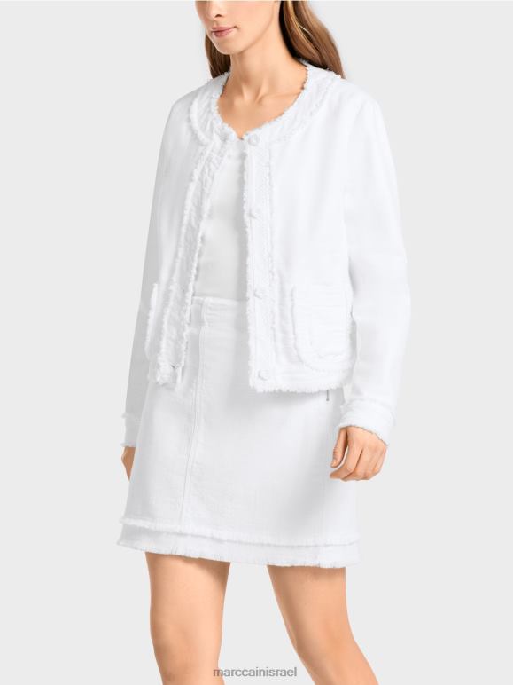 ז'קט נשי מכותנה עם אלסטן. לז'קט הזה יש שוליים שובבים על המכפלת, הפנלים והחפתים. הכיסים המעוגלים מעוטרים גם בשוליים. הז'קט נצמד עם כפתורים פרחוניים רומנטיים. חצים ותפרי נסיכות מבטיחים התאמה צמודה לדמות.