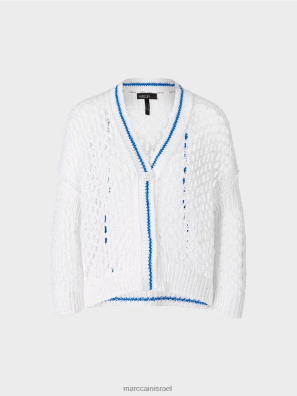 קרדיגן סרוג אוורירי בתערובת כותנה. ז'קט הסריג הרחב הזה מעורר השראה עם דפוס החורים יוצא הדופן שלו. הפריט הוא "סרוג בגרמניה": סריגת החוטים במכונות סריגה אולטרה מודרניות וגימור הבדים מתבצעים בגרמניה. החלקים הבודדים, כגון שרוולים, חלק קדמי וכו', נתפרים יחד בחברות שותפות אירופאיות. חפתים מצולעים עם פסים מנוגדים וסגירת כפתורים מרחפים את העיצוב בסטייל.