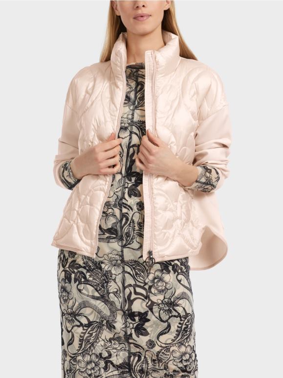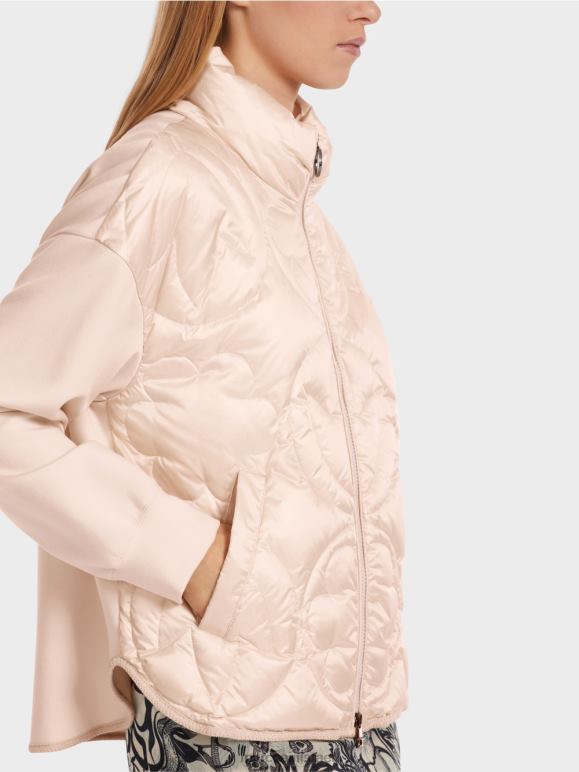 המעיל נושא את תווית הקיימות "לחשוב מחדש ביחד". החלק הקדמי עשוי פוליאמיד ממוחזר וממולא בפומה מאווזים מחקלאות מוסמכת ידידותית לבעלי חיים. השרוולים והגב עשויים מג'רסי רך וגמיש עם תוכן ויסקוזה. פרטים פונקציונליים כוללים את הרוכסן הקדמי, צווארון עמיד וכיסים מלוכסנים. קו המכפלת מעוגל לכיוון התפר הצדדי. הגב חתוך מעט יותר.