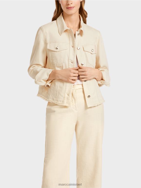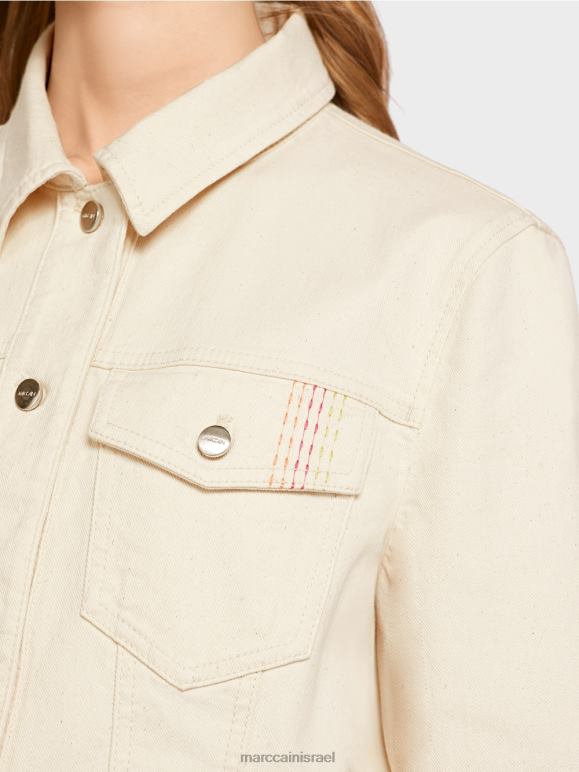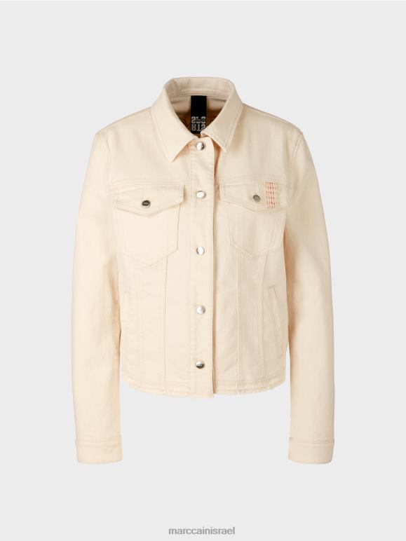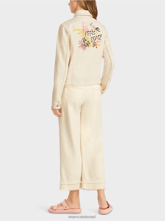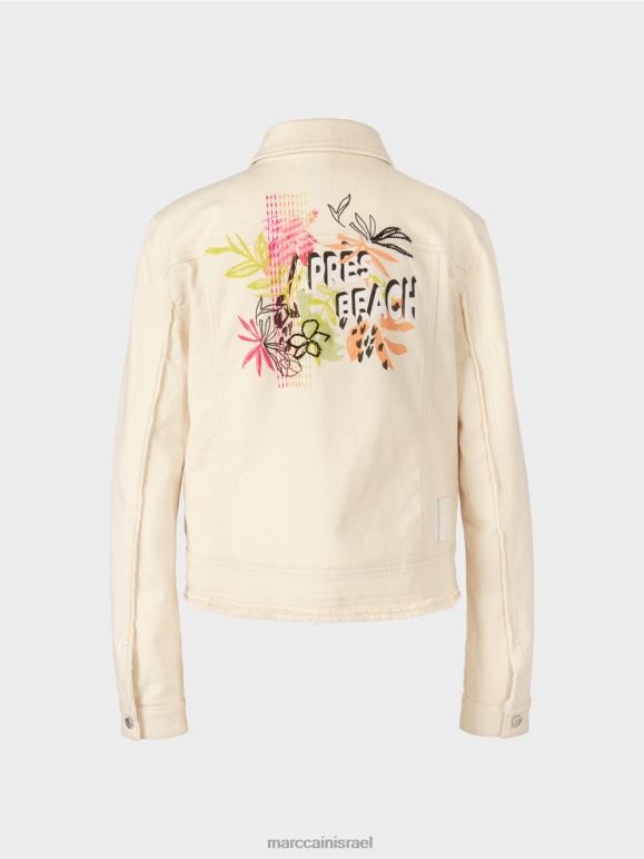 ז'קט ספורטיבי מכותנה עם אלסטן. לז'קט הג'ינס הזה יש תחושה קיצית עם הצהרת ה"אפרה ביץ'" והדפס פרחוני על הגב. אלמנטים טיפוסיים כוללים את כיסי החזה עם דש ושני כיסי הצד. כפתורי מתכת ותפרים כפולים משלימים את סגנון הג'ינס, בעוד המכפלת המרופדת משלימה את העיצוב כלאחר יד.