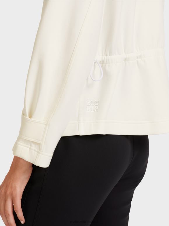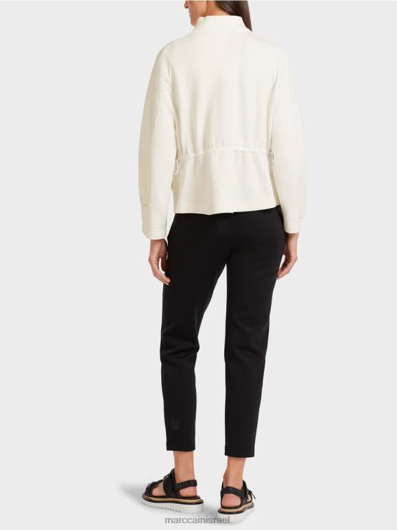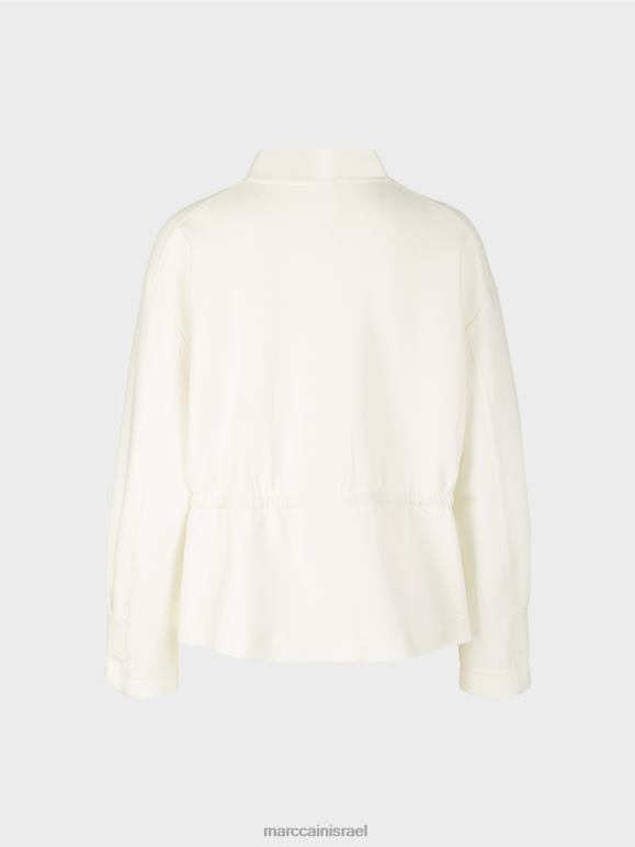 העיצוב הנקי של הז'קט הזה מציג את הגזרה המעניינת שלו במלואה: המעמד הגבוה- למעלה צווארון והרוחב שנאסף מאחור עם שרוך. רוחב המכפלת על הזרוע מצטמצם עם רצועה על השרוולים. החלק הקדמי כולל דשים דקורטיביים וכיסי תפר צדדיים. הז'קט ננעל עם רוכסן.