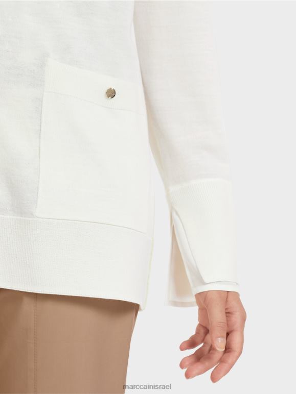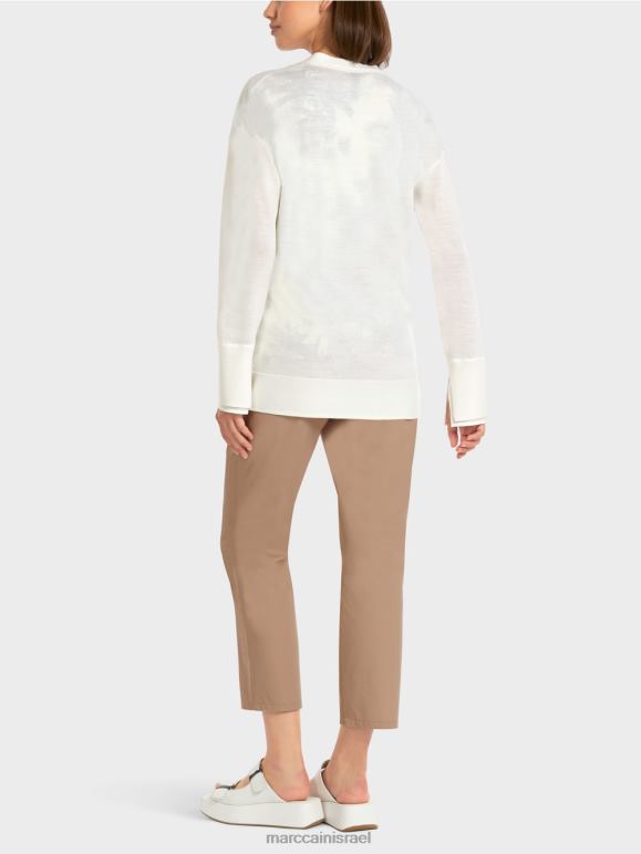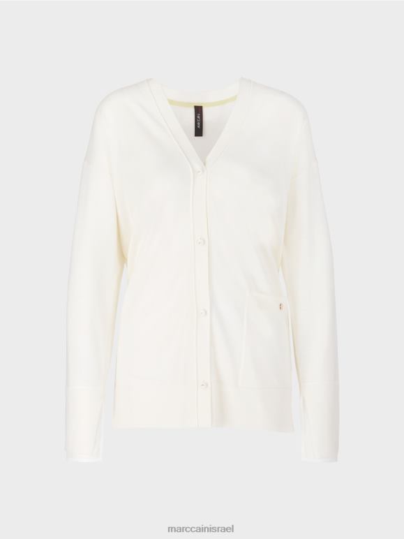 הקרדיגן האלגנטי הזה משוחרר כלאחר יד ויש לו שרוולים נמוכים. הסריג העדין מודגש בשוליים חזקים. שולי השרוול משובצים בחומר ניגודי כדי ליצור רושם של שרוול חולצה שמציץ החוצה ומוסיף פרט שיקי.