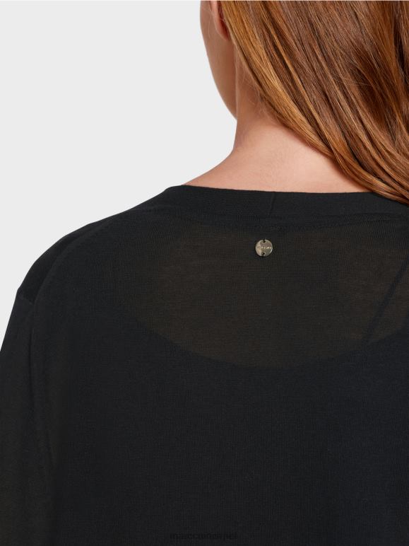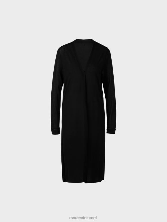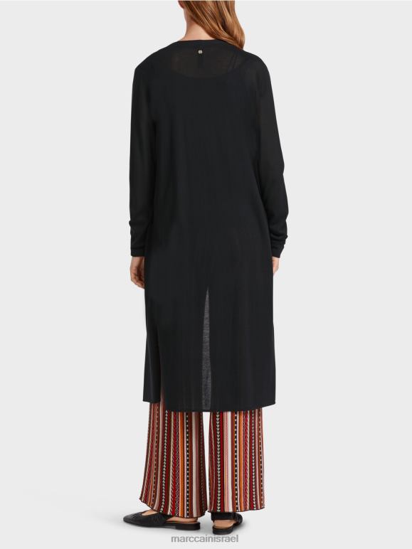 החוט העדין ותערובת החומרים הבלעדית הופכים את הקרדיגן הארוך הזה לנוח ללבישה ולתת זה וילון זורם ברכות. לפריט יש צווארון V וחריצים בצדדים. אין לו חיבורים ולכן הוא נלבש פתוח. יש גבול עם דפוס פתוח על שולי השרוול.