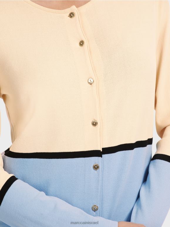 קרדיגן צבעוני בעיצוב קולור בלוק. הקרדיגן האופנתי הזה כולל כיסום כפתורים ומגיע עם צוואר עגול. הוא עשוי מתערובת של חומרים עם ויסקוזה. הקרדיגן בגזרה ישרה סרוג וגם בגימור אצלנו בגרמניה. המשך העיבוד של החלקים הבודדים מתבצע על ידי חברות שותפות אירופאיות. זה אומר שהפריט "סרוג בגרמניה".
