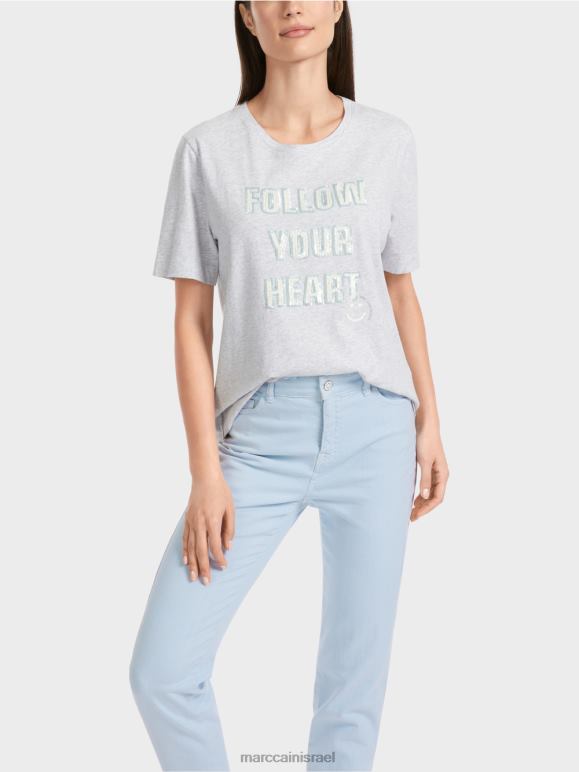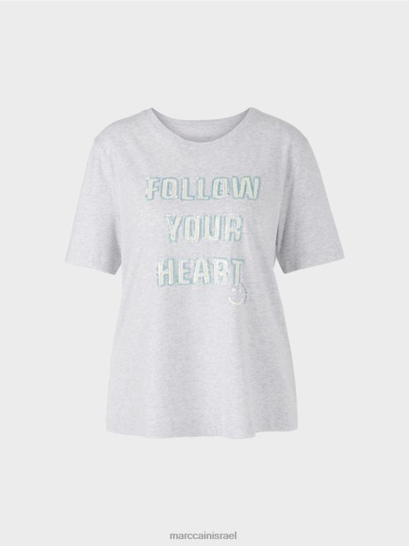 חולצת טריקו עם גזרה קלאסית ומוטיב יעיל: הסלוגן 'עקוב אחרי הלב' מיושם עם פאייטים ניאון וממוסגרים בשחור.