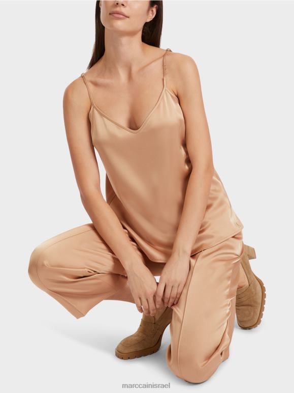 טופ זורם רך בתערובת חומרים עם אלסטן. שרשרת קטנה על הרצועה המתכווננת מעניקה לחלק העליון הפשוט הזה את המגע המיוחד שלו. הוא מגיע בצללית נינוחה וכולל צווארון V. חריצי צד מדגישים את העיצוב השובב.