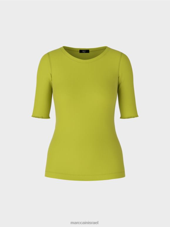 החולצה עשויה צלעות כותנה גמישות וחתוכה קרוב לגוף. העיצוב הנשי מוגדר על ידי שרוולים ארוכים וקו צוואר מורחב מעט. הצוואר העגול של הטי-שירט הוא קצוות, שולי השרוולים פתוחים וניתנים לקיפול.
