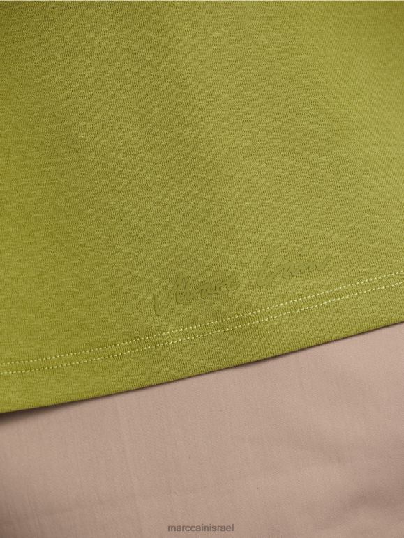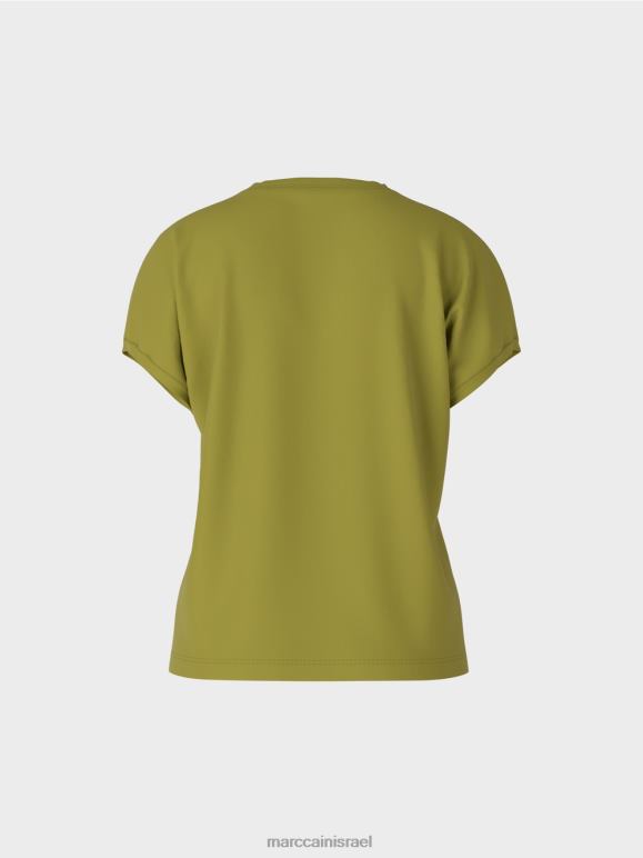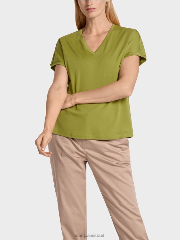 ירוק זית עמוק Marc Cain חולצת טריקו חלקה עם צווארון V הַלבָּשָׁה 62FRR1395