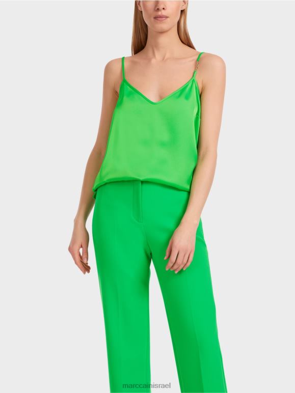 חלק עליון רך זורם בתערובת חומרים עם אלסטן. שרשרת קטנה על הרצועה המתכווננת מעניקה לחלק העליון הפשוט הזה את המגע המיוחד שלו. הוא מגיע בצללית נינוחה וכולל צווארון V. חריצי צד מדגישים את העיצוב השובב.