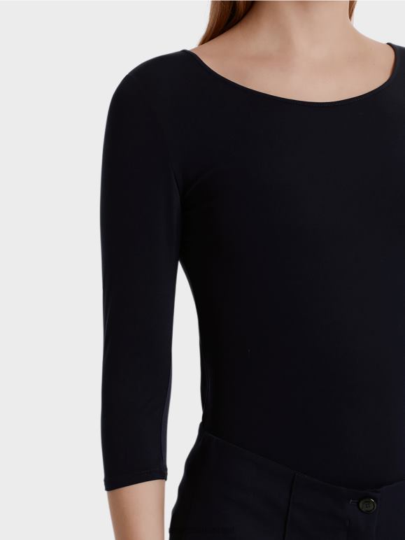 חולצה איכותית עם שרוולים ארוכים מאת Marc Cain בחומר המתיחה המשובח ביותר עם תחושה רכה במיוחד ואפקט מחויט דיסקרטי. פריט חיוני מקסים זה משלים על ידי צווארון מעוגל רחב ותפירה כפולה על חפתי השרוולים והשולי.