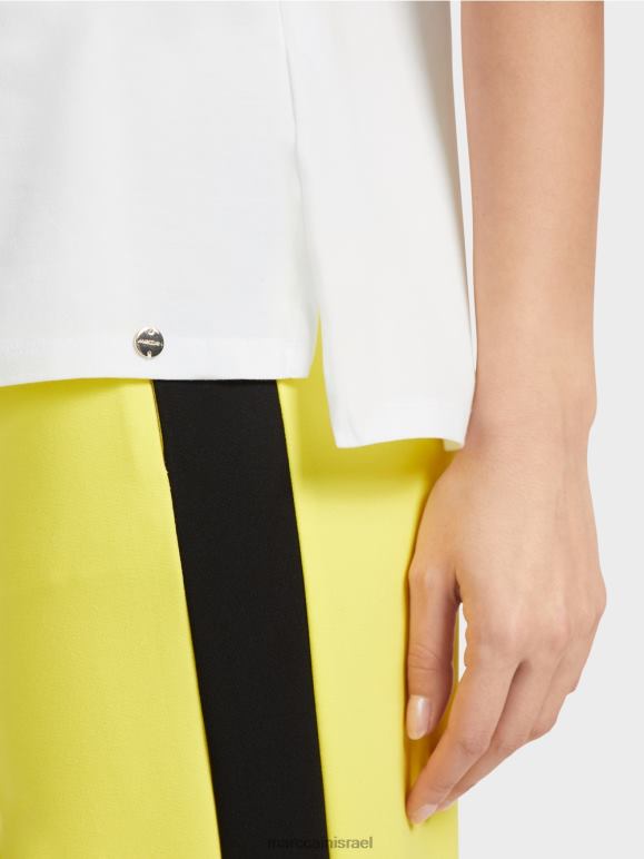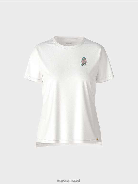 חולצת טריקו כותנה נמתחת. אפליקציית ציפור עם חרוזים בצד שמאל של החזה מושכת את העין. הוא מגיע בגזרה חובקת דמות, עם גב מורחב וחריצים. צווארון עגול רחב ושרוולים באורך רבע משלימים את הסגנון בצורה ספורטיבית.