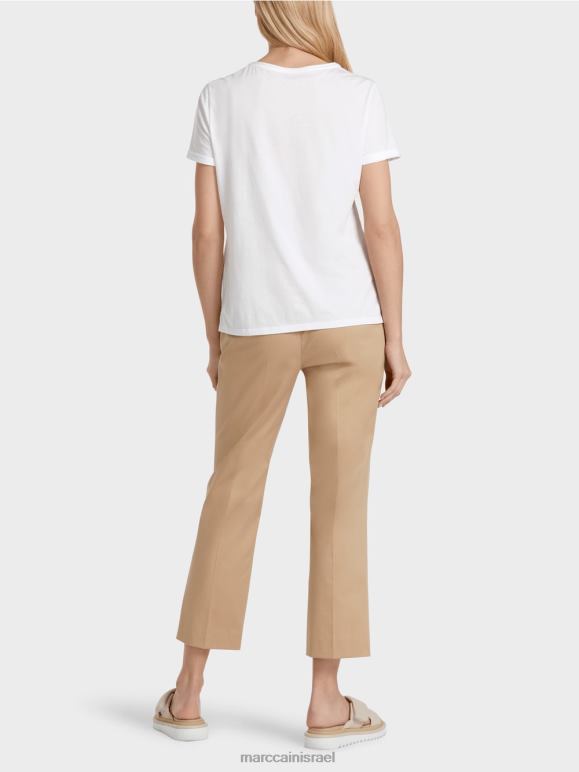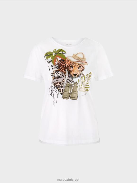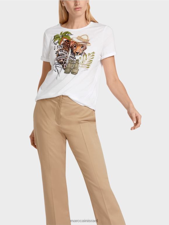 חולצת טריקו בגזרה רפויה מכותנה רכה וקלת משקל. אלמנטים מסוגננים כוללים את החפתים הצרים על השרוולים הקצרים, החריצים הצדדיים והחלק האחורי מעט הארוך יותר. המוטיב דמוי הקולאז' בחזית יוצר השפעה באמצעות מיזוג של הדפס ואפליקציה. אבנים נוצצות מוסיפות נופך של זוהר למוטיב.