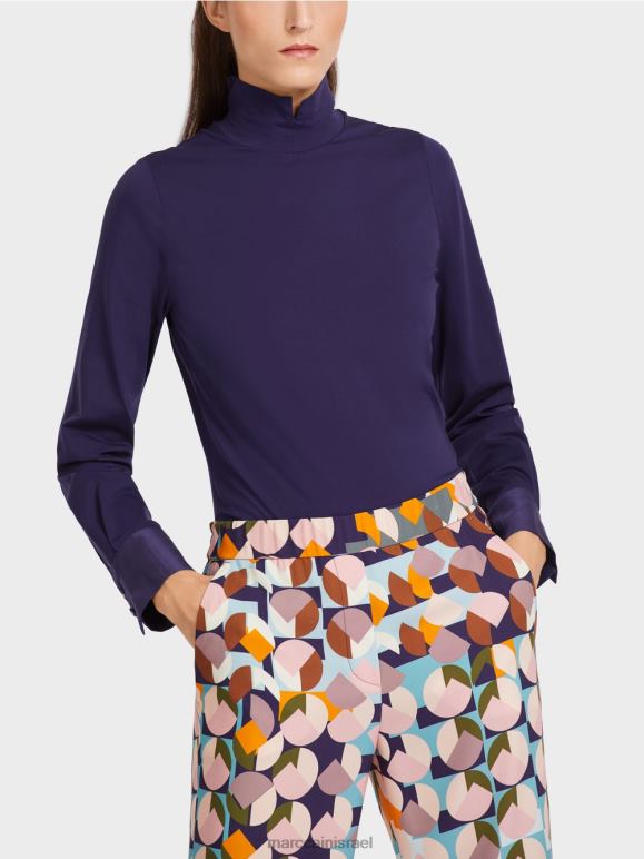 הגזרה האלגנטית עם שרוולים ארוכים עם חפתים, כל אחד מהודקים בשני כפתורים, מוסיף נופך מיוחד הטי-שירט הפשוטה הזו. עשוי מכותנה, הוא יושב בנוחות הודות לתכולת האלסטן הנמתחת והצללית הקז'ואלית שלו. הצווארון העמיד כולל חריץ המדגיש את העיצוב יוצא הדופן הזה.