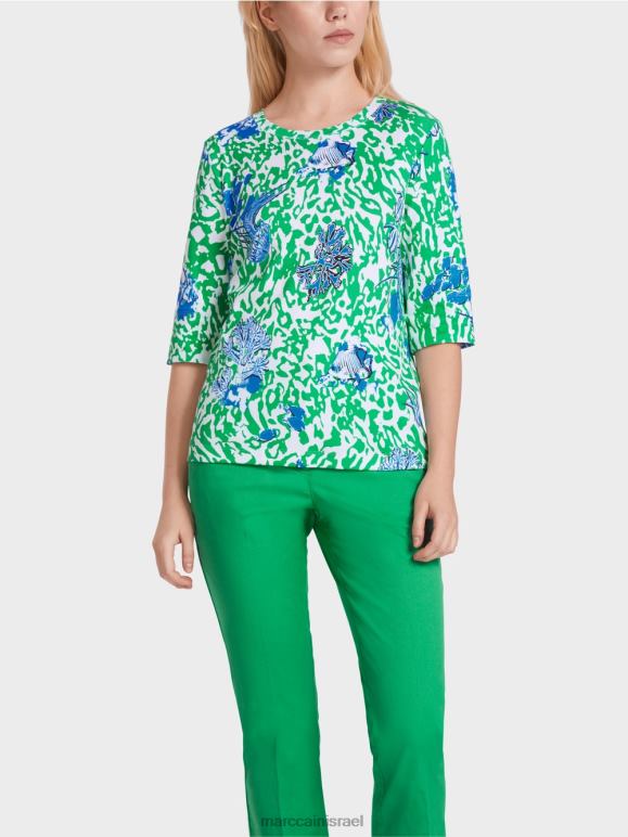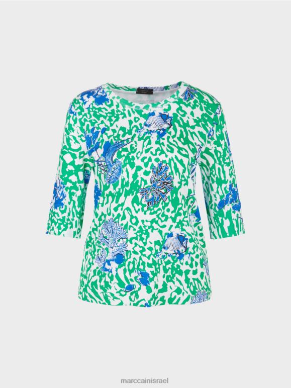 עולם תת-ימי עתיר דמיון מעטר את החולצה הזו עם הדפס על הכל. הוא חתוך קרוב לדמות ועשוי מכותנה עם כמות קטנה של תוכן מתיחה. צווארון עגול ושרוולים באורך חצי משלימים את העיצוב.