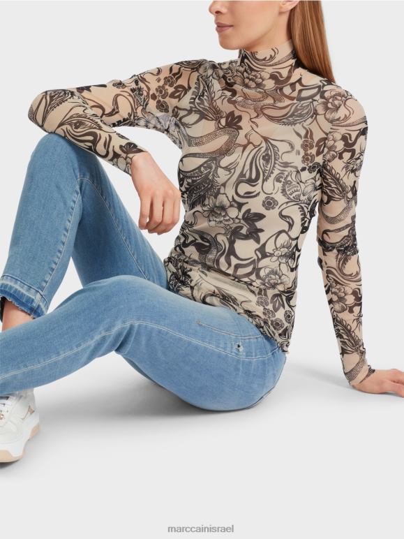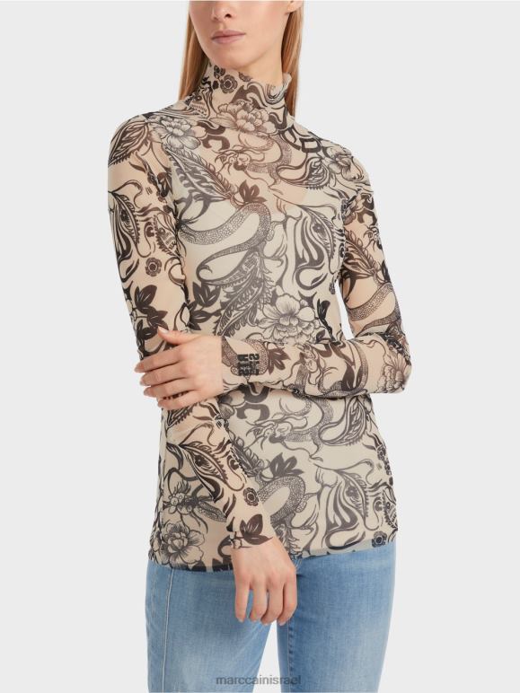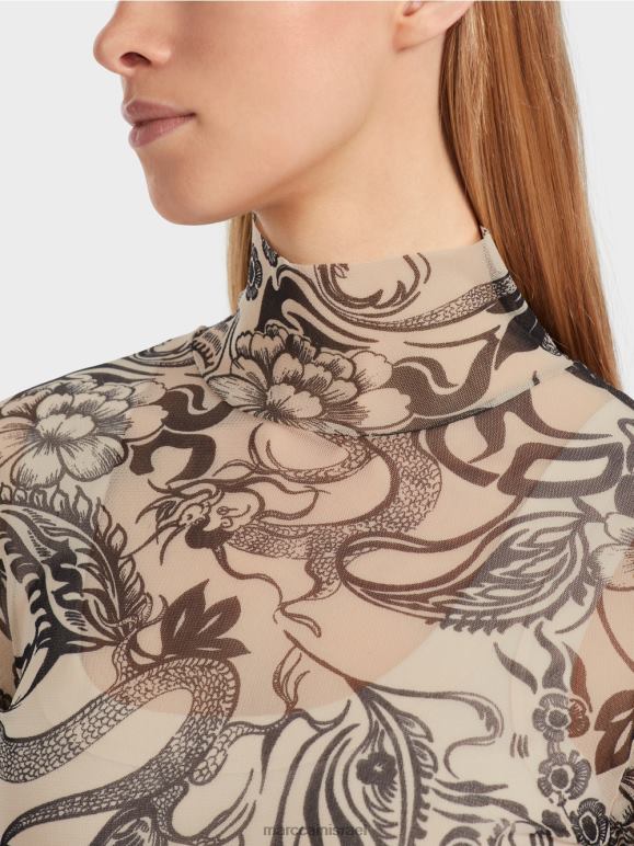 החולצה עם השרוולים הארוכים היא ארוכה יחסית. הגזרה דקה וישרה. היבט אופנתי הוא הצווארון העמיד. הטול השקוף למחצה מודפס כולו. המוטיב - צורות פרחים ודרקונים שזורים זה בזה - בהשראת קעקועים מיסטיים.