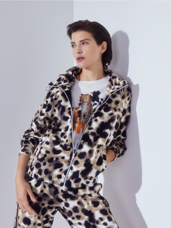 חולצת טריקו בולטת מכותנה משובחת. ההדפס על חולצת טריקו רפויה זו מציגה עיצוב נמר אותנטי ושילוב של אותיות. הסגנון מתהדר בצווארון רחב ושרוולים קצרים. כיתוב ספורט עדין של Mc משלים את העיצוב.