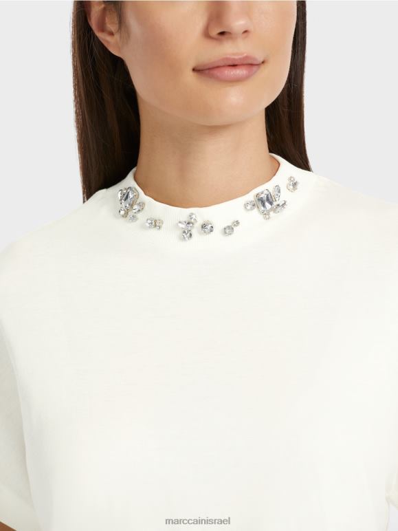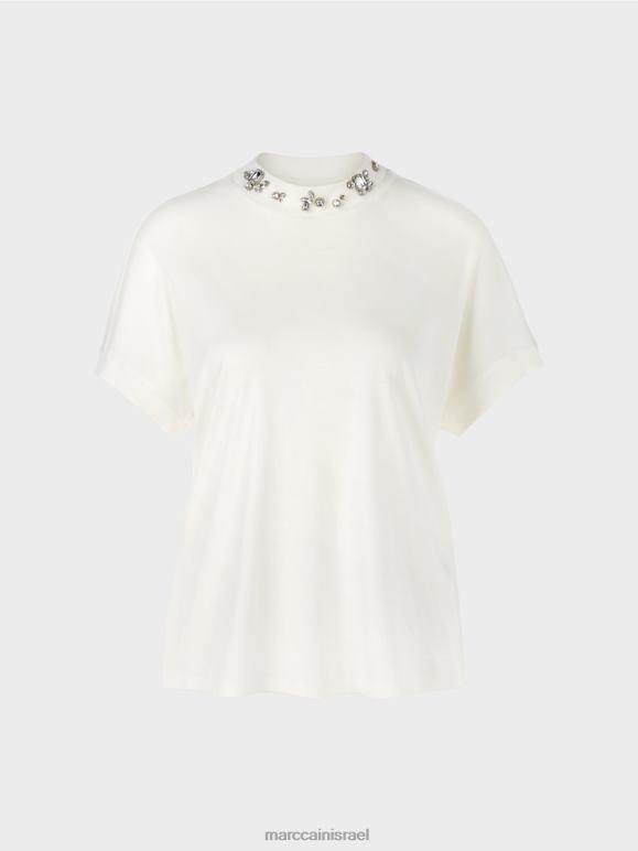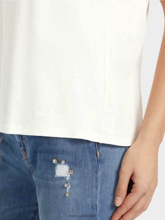 חולצת טריקו רפויה עשויה כותנה. לוכד העין של חולצת הטריקו הזו הוא רקמת החרוזים המבריקים על הצווארון הניצב. העיצוב עם שרוולים חתוכים הוא יוצא דופן באותה מידה. הצללית הישרה מביאה מנה של נינוחות לחלק העליון הנשי הזה.